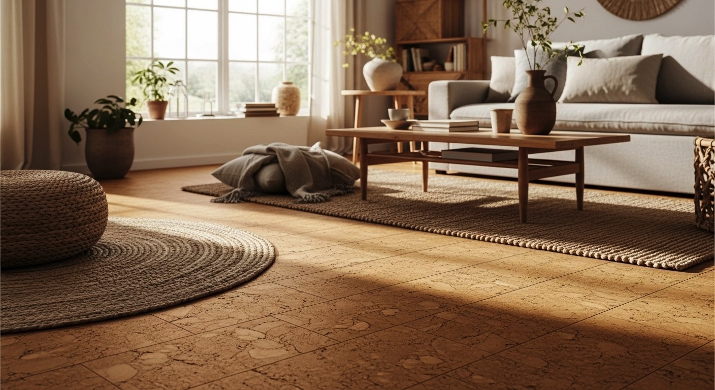 Thanks to the cork layer, the boards are slip-resistant, shock-absorbent and robust. They are perfect as sustainable floor tiles in residential and commercial spaces.